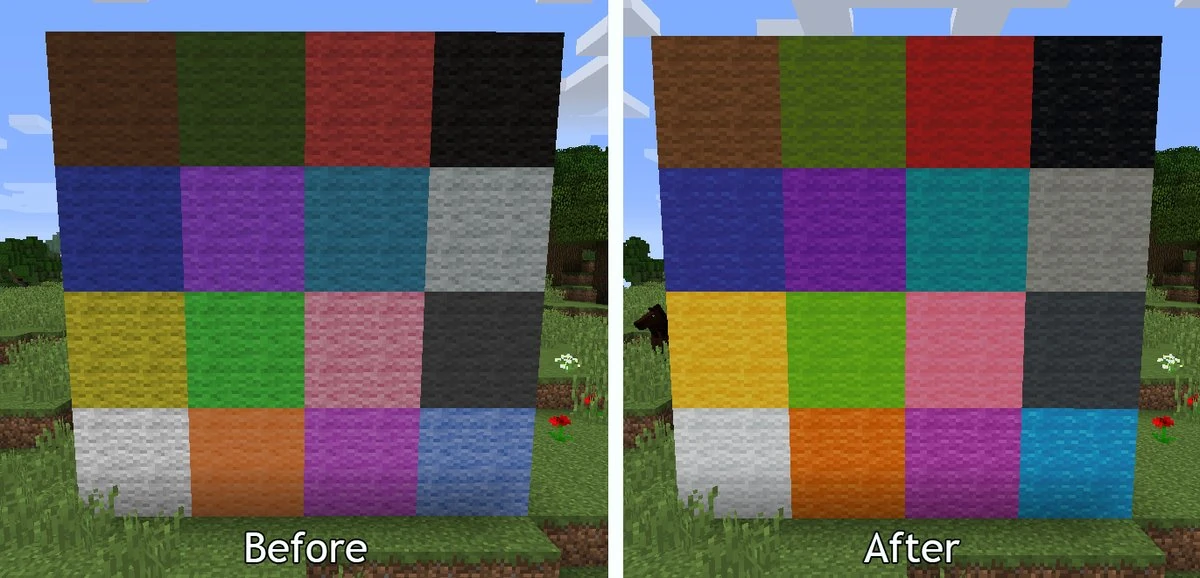 Новые цвета шалкеров и шалкеровых ящиков. Цвета фиолетовых шалкеров и шалкеровых ящиков были позже изменены на нормальные.