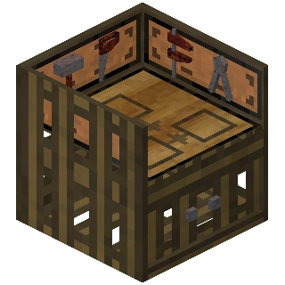 Этот механизм можно использовать как с графическим интерфейсом, так и без него. Щелкните ПКМ по верхнему слоту, чтобы положить в него материал (⇧ Shift + ПКМ забрать материал), в левый слот необходимо положить любое каркасное изделие и, если все сделано правильно, в правом слоте появиться каркасное изделие с отделкой блока, который вы использовали. Чтобы его забрать необходимо нажать ⇧ Shift + ПКМ. В верхний слот можно положить только твёрдые блоки, а в левый только каркасные изделия из BiblioCraft.