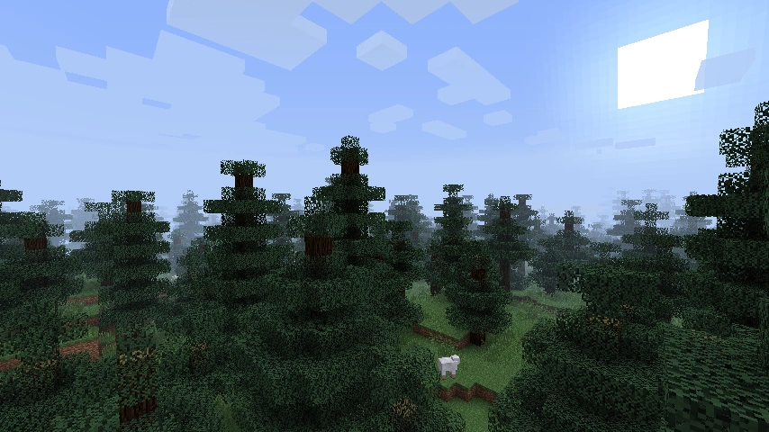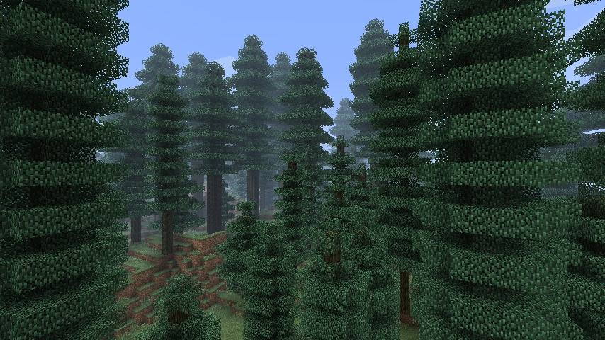| Еловые леса | Предназначена для представления бесснежной тайги из Beta 1.8, но с более высокой травой, несильно высокими деревьями. |