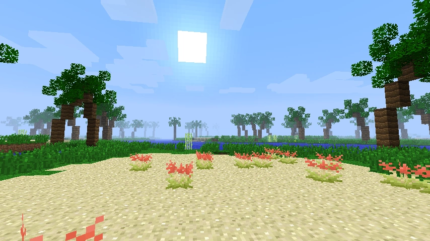 | Пышное болото | Предназначено для представления оригинальных болотных биомов из Beta 1.8, без какого-либо тёмного затенения травы/листвы/воды и высоким плющом. |