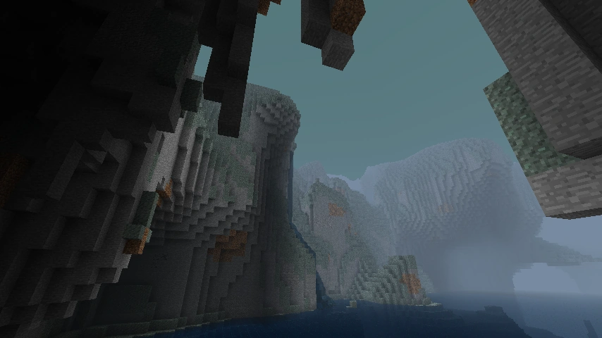 | Нефритовые утёсы | Биом-победитель на конкурсе «100 Page Celebration». Зубчатые утёсы с кустарниками и соснами под нефритовым небом. |