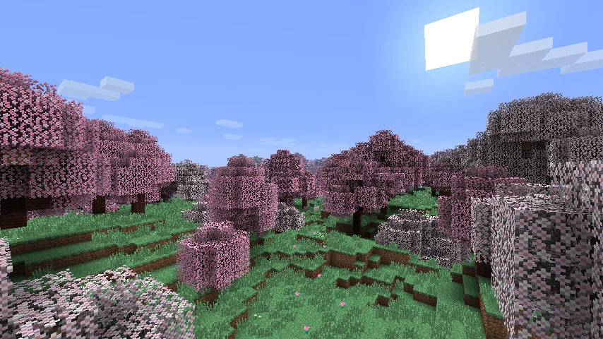 | Фруктовый сад | Летний лес с яркой жёлто-зелёной травой, подсолнухами, одуванчиками, и другими всевозможными цветами. Деревья в лесу могут расти вместе с листьями, которые имеют очень высокую вероятность дропа яблока. |