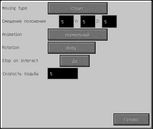 Теперь когда вы научились создавать своего NPC в статье Создание нового NPC, можно перейти к настройкам этого NPC. Всё указанное ниже можно вызвать через Настройщик NPC.