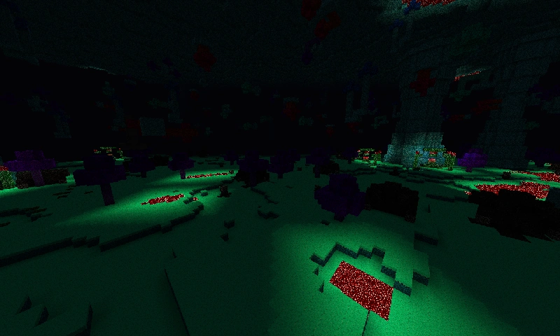 | Дикий лес | | Второе из пяти сумеречных измерений. Внешне оно ничем не отличается от Эдема, за исключением синей травы. Мобы практически те же самые, только более сильные. Чтобы попасть в него, необходимо построить рамку портала из блоков Эдема и активировать сумеречными часами. В данном измерении вам предстоит сразиться с боссом Термасектом и сделать это несколько раз, чтобы попасть в следующее измерение. |