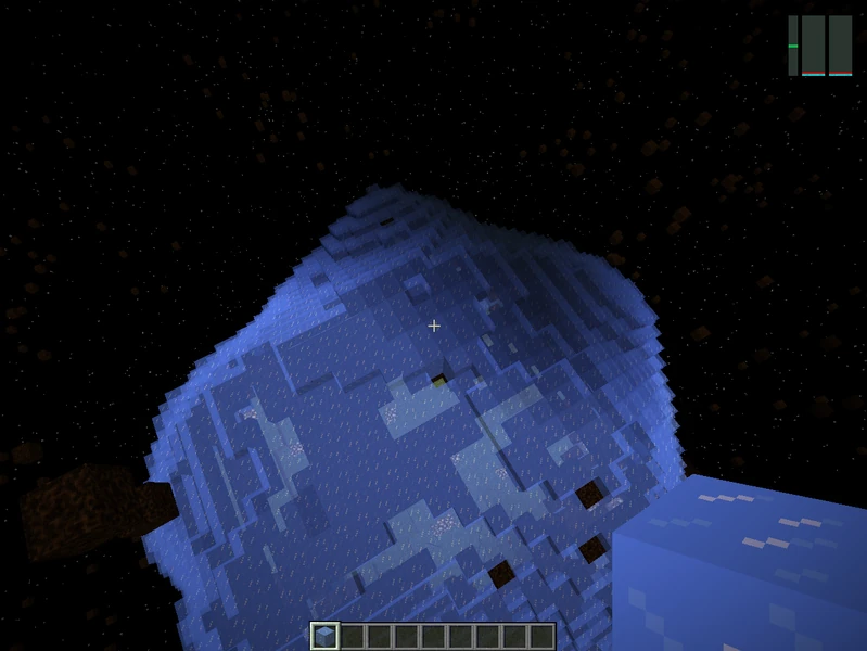 Ледяной астероид — это астероид с неким «скрытым садом» внутри. Обычно они имеют ширину 30х30 блоков; снаружи покрыты плотным льдом, а внутри сделаны из темных астероидных пород, и есть большая комната с травой и светящимся камнем. В зависимости от возникновения на траве могут быть карликовые дубы и маки.