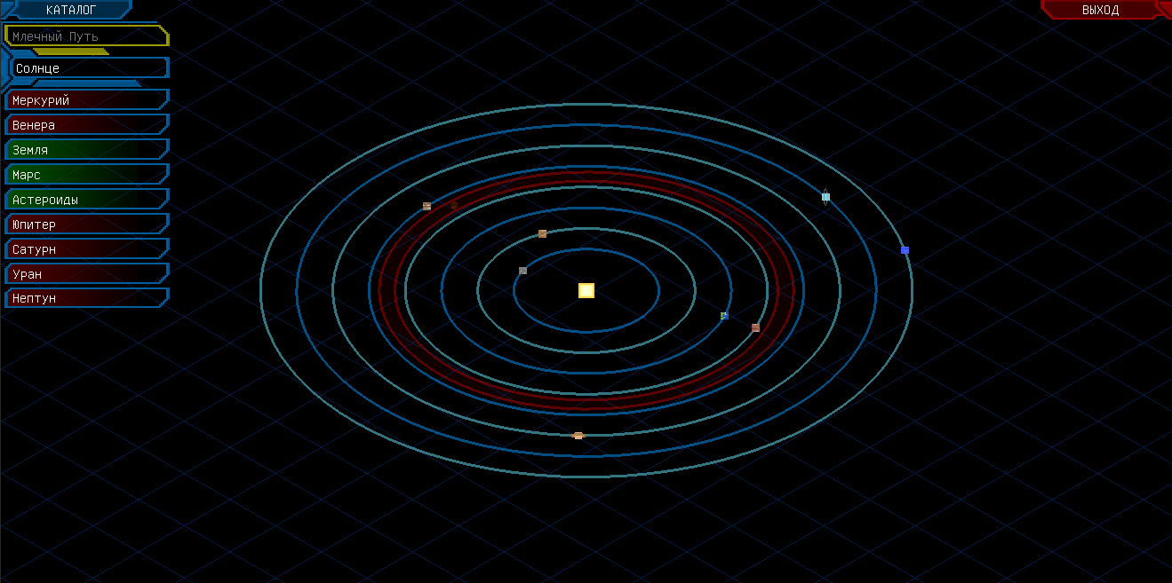 На галактической карте отображаются все планеты Солнечной системы, в том числе и недоступные в текущей версии модификации. Двойной щелчок по иконке или названию в списке любой планеты фокусирует карту на ней, позволяя просматривать спутники.