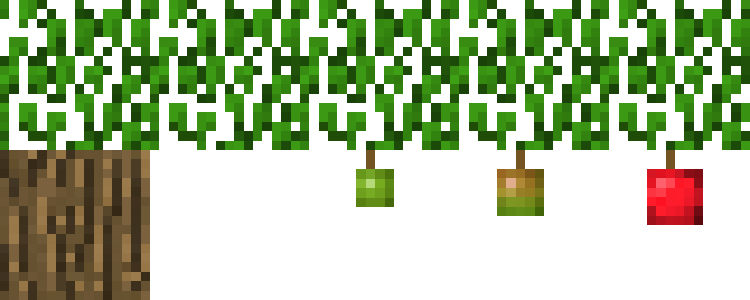 На нижних гранях куба листвы через некоторое время появляются яблоки, условие их появления — пустое пространство под листвой. Яблоки пройдут несколько фаз роста и, созрев, упадут на землю. Процесс роста можно ускорить, используя костяную муку на плоды.