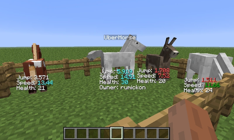 HorseInfo — это модификация, позволяющая отобразить характеристики лошадей, ослов и мулов, а также владельца всех приручаемых животных.