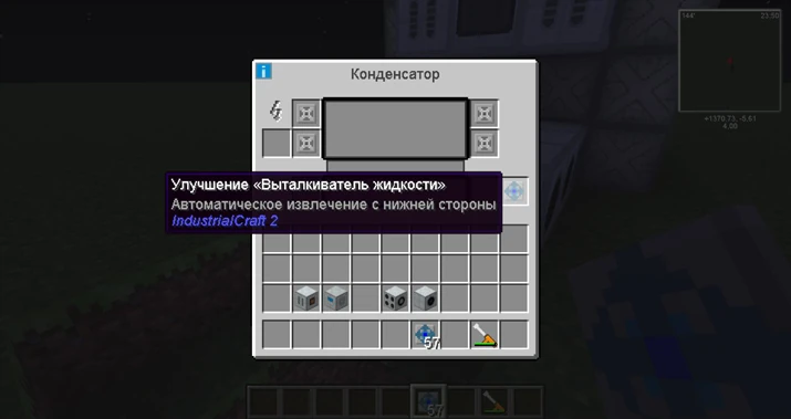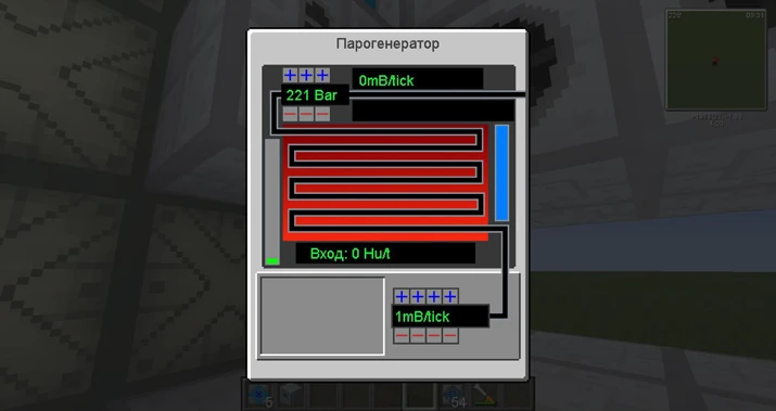 Затем ставим 2 кинетических парогенератора , и в них вставляем, паровую турбину и Выталкиватель жидкости , настроенный с нижней стороны.