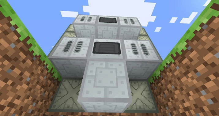 По центру площадки ставим ядерный реактор (только на 1 блок выше). Добавляем к нему 6 реакторных камер.