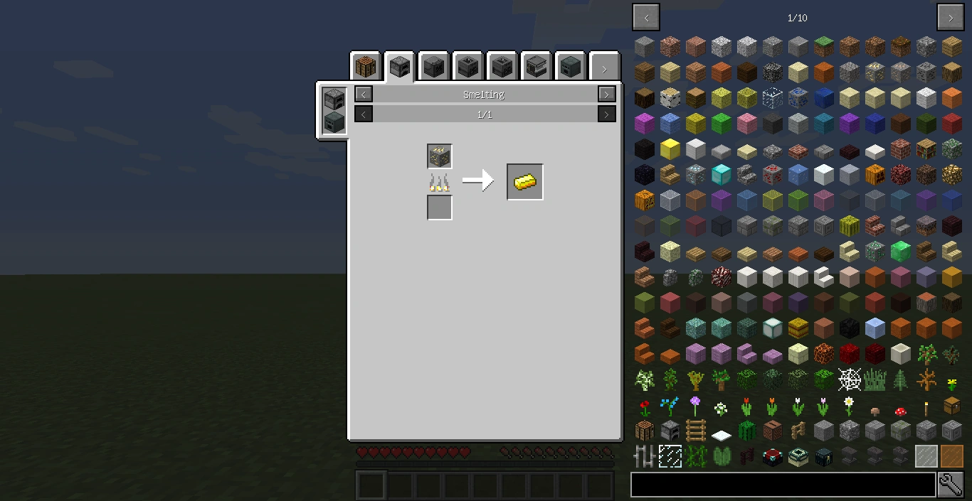 Just Enough Items (сокр. JEI) — модификация, показывающая рецепты крафта предметов и блоков, а также рецепты, в которых эти предметы и блоки участвуют. Имеет гибкую интеграцию с другими модификациями. Это позволяет получить рецепты крафта не только верстака и печи, но и машин из разных модификаций, например дробителей.
