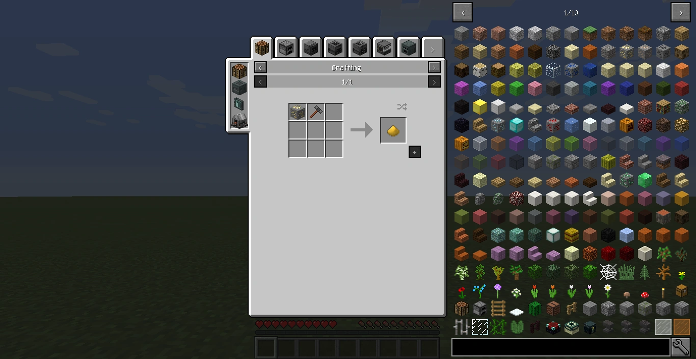 | Нажать на кнопку [+], ⇧ Shift + ЛКМ для нескольких наборов предметов | Переместить предмет в сетку крафта |