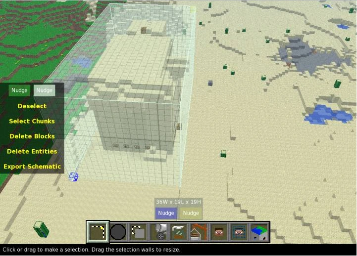 На изображении выше показан пример выделения. Выделение MCEdit производится также, как и в WorldEdit.