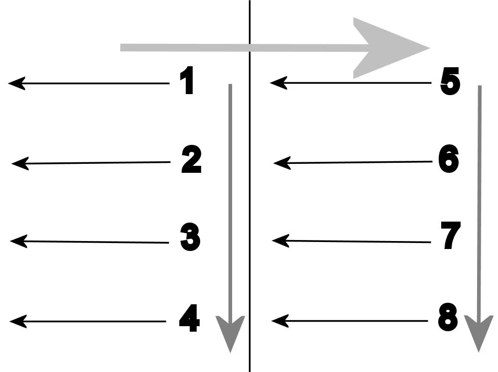 Какая панель определяется порядком, который вы поместили после метки, первый номер относится к панели, ближайшей к верхнему праву нижнего этажа, затем справа налево, затем вниз по столбцам, затем вверх. Это означает, что панели на нижнем этаже всегда будут перед панелями на верхнем этаже после знака, а первая панель между двумя на том же флорре будет первой, а самое дальнее право - первым из двух в том же ряду и на тот же этаж.