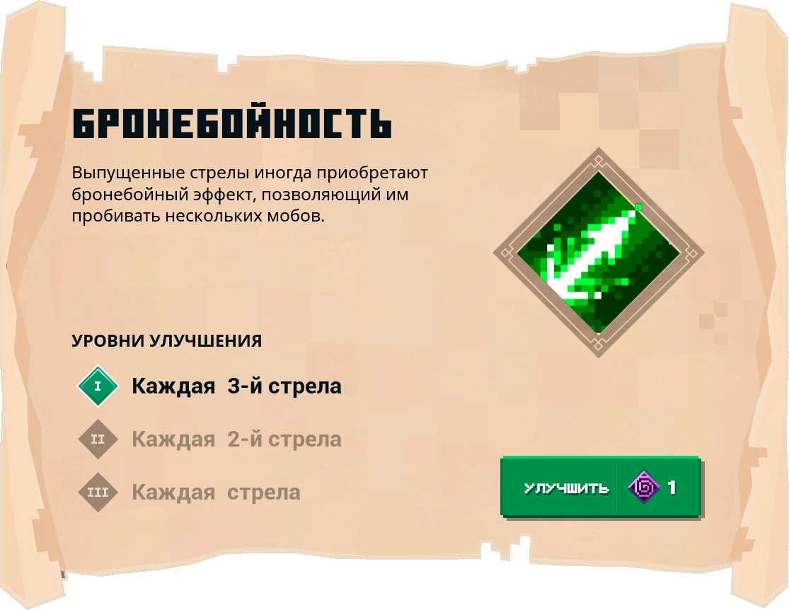 | II | Каждая 2-я стрела | 2 очка зачарований |