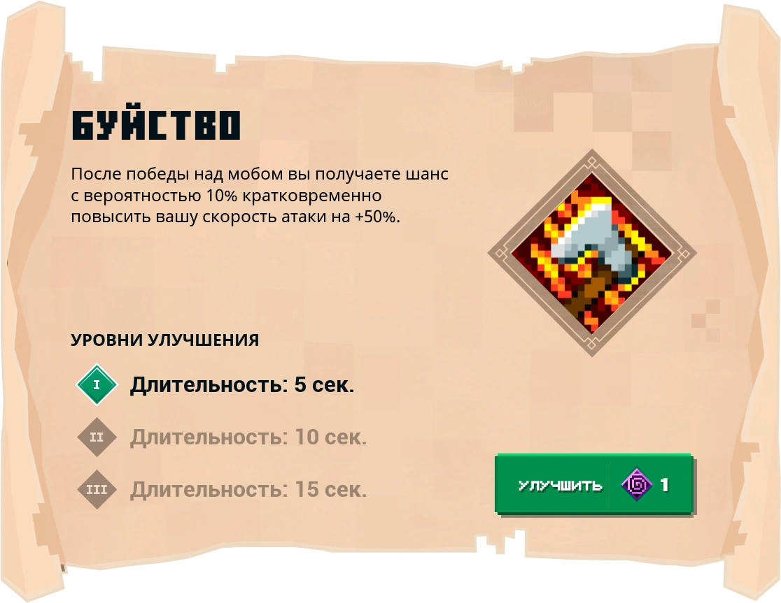 | I | Длительность: 5 секунд | 1 очко зачарований |