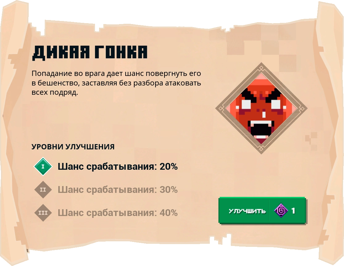 | I | Шанс срабатывания: 20 % | 1 очко зачарований |