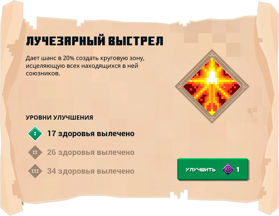 | I | 17 здоровья вылечено | 1 очко зачарований |