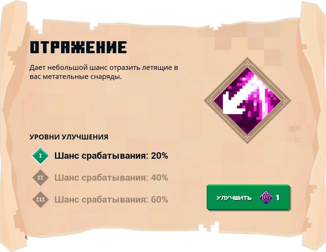 | I | Шанс срабатывания: 20 % | 1 очко зачарований |