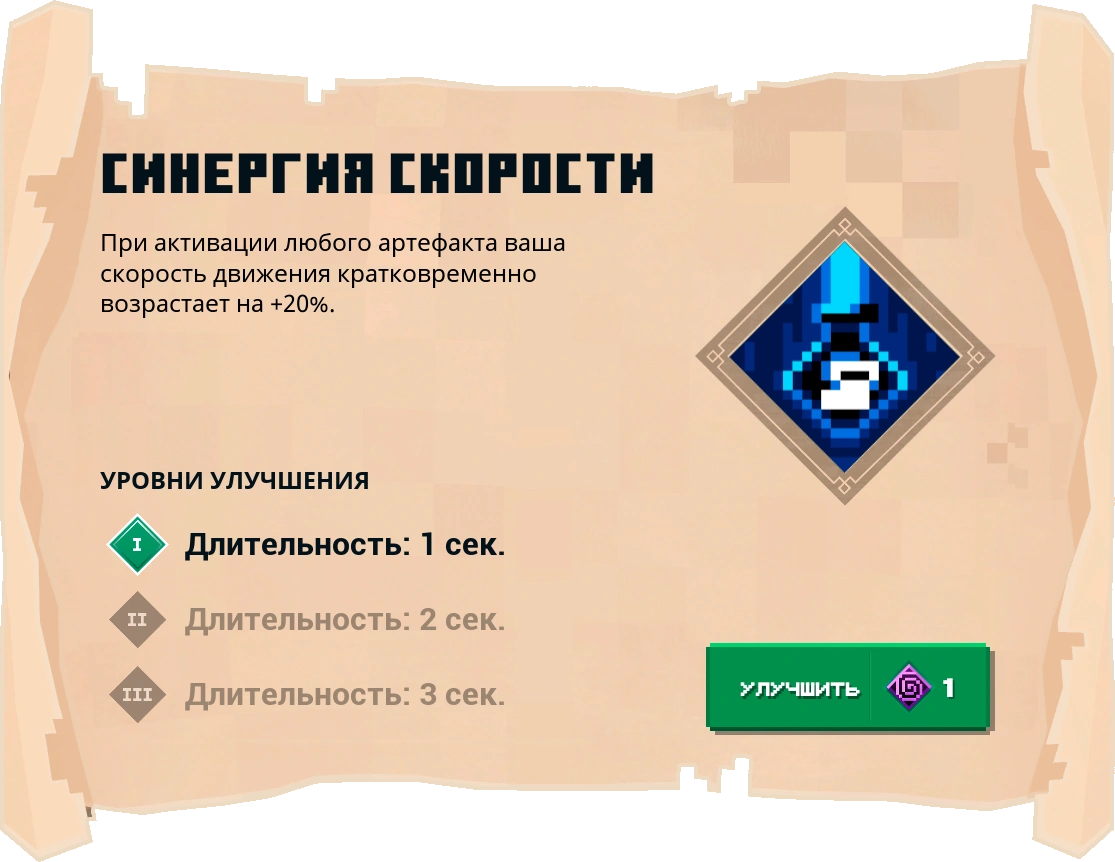 | I | Длительность: 1 секунда | 1 очко зачарований |