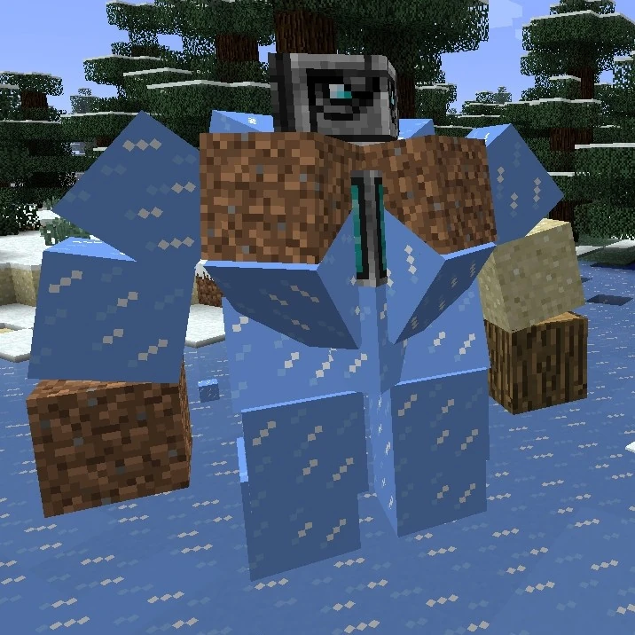 Спаунится ночью и в темноте. Сразу после спауна модель голема состоит из 3-х блоков: головы, ядра и блока железа/золота/алмазов или изумрудов. Затем блоки вокруг исчезают, и появляются их сущности, которые присоединяются к голему до тех пор, пока он не станет человекоподобным. Тогда он сможет атаковать игрока, кидаясь в него блоками. Также голем может атаковать игрока в ближнем бою.