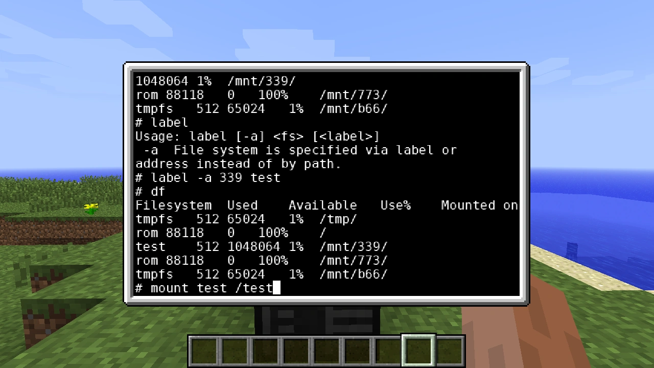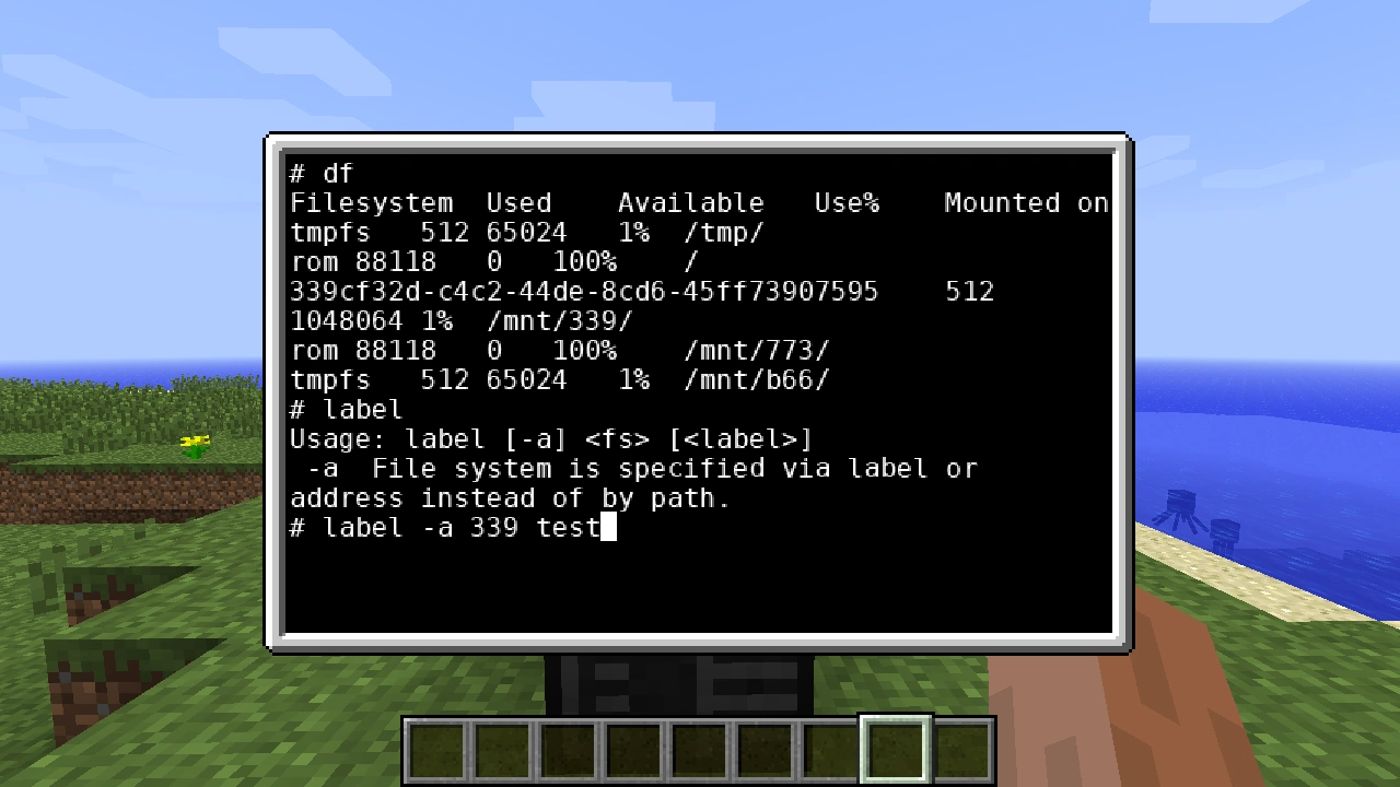В подсказке к жёсткому диску в игре, вы можете увидеть адрес этого диска. Откройте интерфейс и наберите команду df. Эта программа покажет список всех текущих файловых систем и их состояние. Среди них вы увидите одну, помеченную только длинным цифровым адресом (в отличие оперативной памяти или временной файловой системы компьютера). Это должен быть тот самый адрес жёсткого диска.