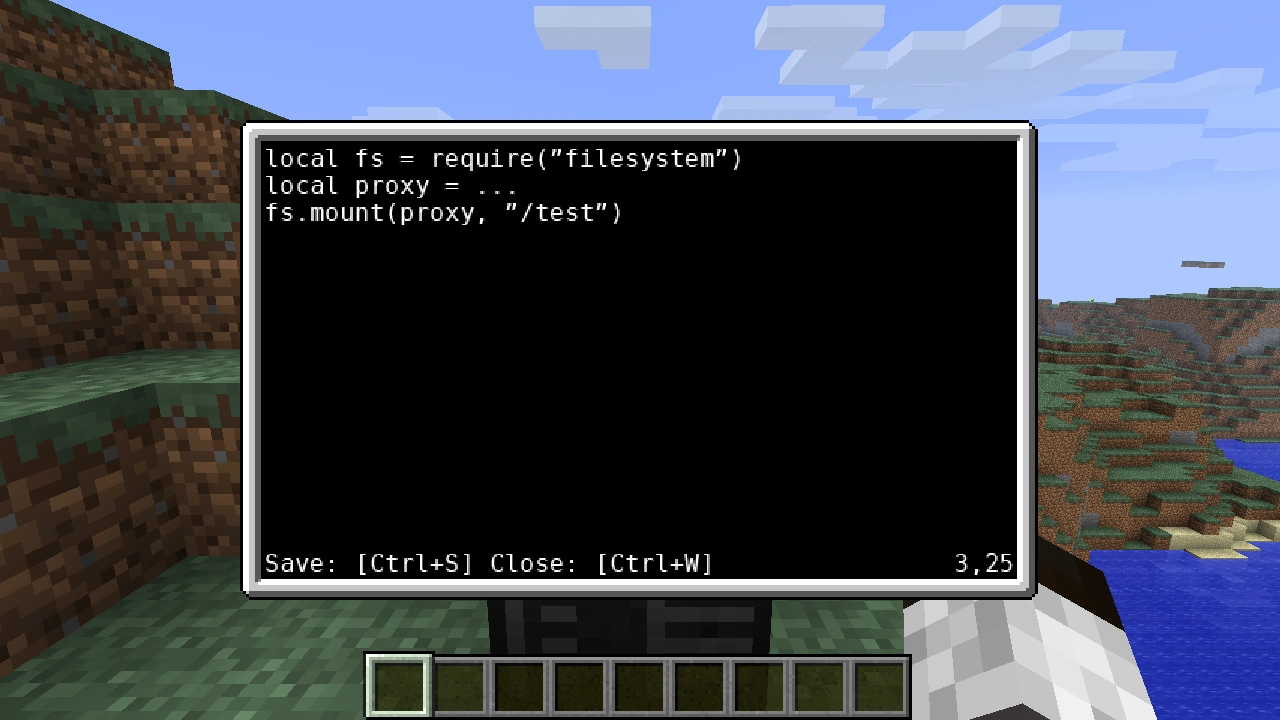 Скрипт автозапуска получает прокси информационного носителя, на котором он находится, первым параметром. Таким образом мы можем использовать Lua varargs синтаксис для доступа к нему. Мы передадим его функции fs.mount(), которая описана в Filesystem API.