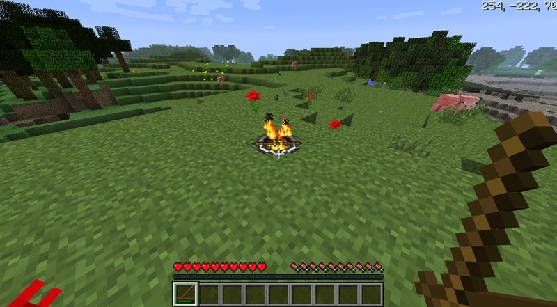 Костёр создаётся путем сбрасывания на землю трёх палок (И бревна в 1.12) и кликом воспламенителя (или огнивом) по блоку, на котором они лежат. Это может занять несколько использований, а иногда даже и несколько воспламенителей, пока костёр, наконец, не загорится.