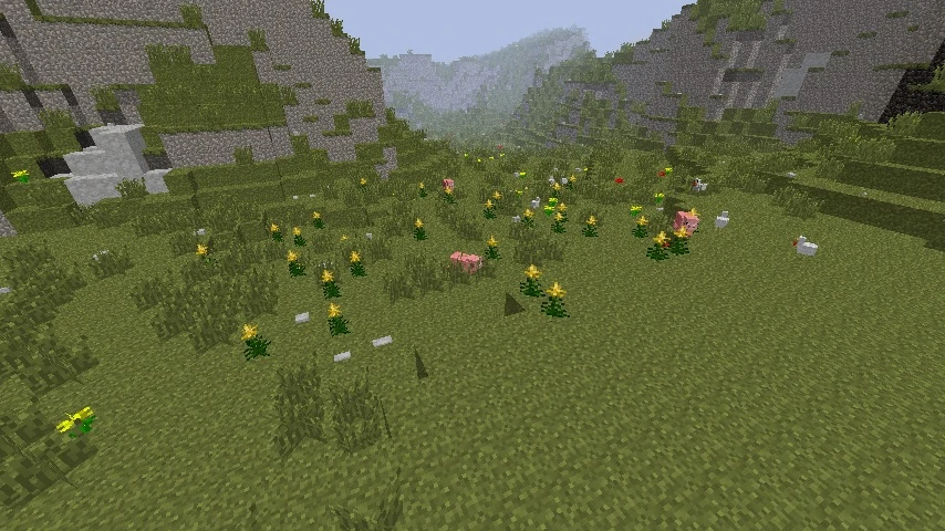 Слой травы в моде покрывает не только землю, но также глину и торф. Кроме того, трава покрывает боковые стороны блоков, но только, если перепад высот не больше одного блока, то есть отвесные стены высотой 2 блока (или выше) травой не покрываются.