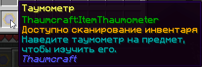 Thaumic Inventory Scanning — дополнение для Thaumcraft 4 и 6, добавляющее возможность изучить всевозможные предметы и блоки в инвентарях (инвентарь игрока, сундуки) и самого игрока таумометром. Это существенно облегчает игру на серверах, ведь на них могут быть невидимые игроки, которые могут подобрать вещи, которые вы выкинули для изучения таумометром.