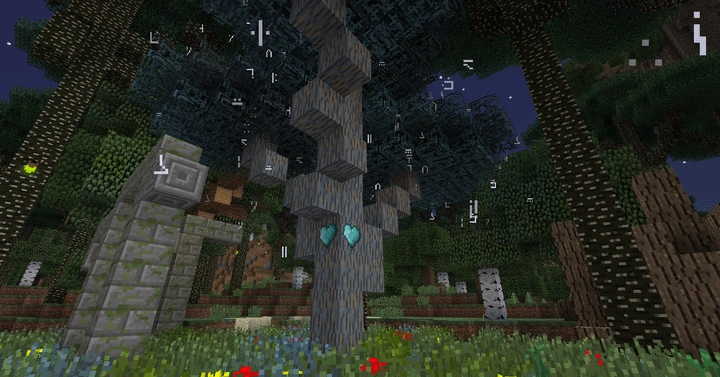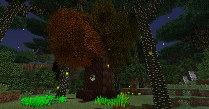 | Дерево трансформации (иногда мудрое дерево) | | Дерево трансформации не несёт в себе какого-либо вспомогательного свойства, однако оно поменяет биом (вне зависимости от того, сумеречный это лес или другое измерение) на зачарованный лес. Когда включено, с его листвы падают буквы стандартного галактического алфавита. Если прислушаться, можно услышать тихую мелодию. |