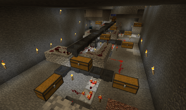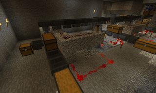 Как вы понимаете, данные устройства можно собирать в каскады. Просто передайте не отсортированные вещи на следующую ступень сортировки и так далее. При установке следующего каскада оптимально отмерять расстояние так, чтобы блок с красным факелом от первой воронки стоял на краю ямы с тоннелем предыдущего устройства.