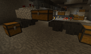 Аналогично можно использовать принцип «стоя́щая под нацеленной на сундук воронкой вторая воронка имеет приоритет перед этим сундуком»: в сундук пойдёт всё, что не будет «схвачено» нижней воронкой. При этом нижняя воронка выполняется «парализованной», а опустошает её третья воронка, управляемая инвертором и компаратором, настроенным примерно на 4.5 стопки (иначе «парализованная» воронка наполнится и перестанет «перехватывать» предметы из самой верхней воронки, «сундучной»).