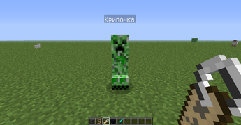 Таким способом можно называть всех мобов, в том числе враждебных, за исключением Дракона Края. Имя будет появляться над головой моба, когда на него наведён курсор.