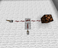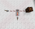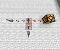 В 12w42a (1.4) появился механизм блокировки повторителей. Заблокированный повторитель удерживает сигнал на выходе в состоянии на момент блокировки, вне зависимости от входа. Как только блокировка снимается, выход снова приходит в соответствие со входом. Для выполнения блокировки нужно подвести к боковой стороне повторителя другой активированный повторитель. У заблокированного повторителя вместо заднего факела появится тонкий прут из коренной породы поперек направления сигнала.