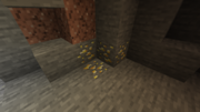 | Золотая руда после разрушения киркой оставляет после себя от одного до трёх золотых блоков. | |||||