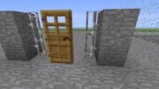 Железные решётки можно использовать как «бойницы». Для этого нужно разместить между двумя решётками дверь. Через образовавшиеся отверстия можно стрелять из лука, в то время как мобы не смогут пройти через них.