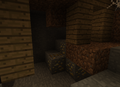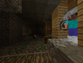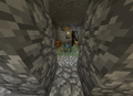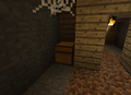 В шахтах стоят П-образные опоры из досок и заборов через каждые 3-4 блока, что сильно помогает с проблемой нехватки дерева для крафта инструментов и факелов. Некоторые места освещены факелами.