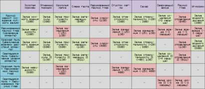 | Всего доступно 161 возможный вариант комбинаций зелий, а также 2,653 различных типов зелий.[2] | |||||