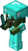 В Java Edition зомби с экипировкой, превращаясь в утопленников, сохраняют броню, но инструменты и оружие исчезают.