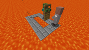 На всех уровнях сложности атакованные зомби также вызывают всех других зомби в пределах от 67×67×21 до 111×111×21 области[2] с центром в атакующем зомби, чтобы нацелить на атакующего игрока, как это делают зомбифицированные пиглины.