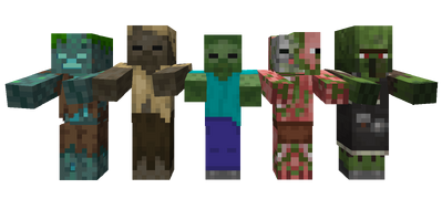 Зомби (англ. Zombie) — враждебные мобы, атакующие игроков и деревенских жителей, горящие на солнце.