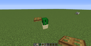 Этап 6. Проведите над кактусами линию из не падающего материала. Лучше использовать блок забора, чтобы меньше срубленных кактусов падало обратно на кактус.
