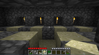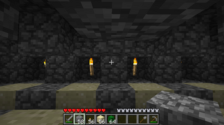 Шаг 3. Постройте 2 такие стенки, в каждое отверстие поставьте факел.
