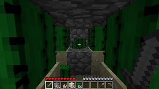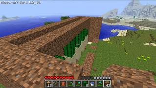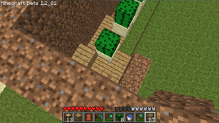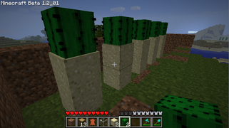 Повторяйте этажи 1-4 до конца башни, в конце сделайте 4-й этаж два раза (иначе кактусы иногда вылетают на верхний срез). Лестницу можно убрать (ферма необслуживаемая), но она почти не мешает. При таком расположении кактусы крайне редко попадают на нижележащие, обычно же отскакивают от боковой стенки песка или булыжника и летят вертикально до самого водосбора (в процессе строительства вы это наверняка несколько раз проверите на себе, неосторожно прыгнув с блока на блок и шлёпнувшись в воду). Иногда, правда, отскакивают на сам изначальный кактус, но это компенсируется компактным расположением, позволяющим впихнуть на малую площадь огромное количество (причём с весьма небольшим трудом по постройке).