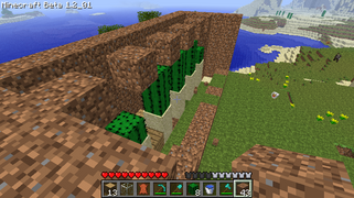 Этап 4. Увеличьте стену сзади и по бокам на 1 блок в высоту; посадите кактусы.