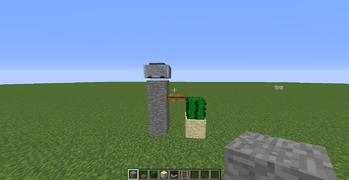 В принципе, ферма готова. Для проверки можно ввести команду /gamerule randomTickSpeed 1000. Кактус должен попадать в вагонетку с воронкой. Эту ферму можно расширить вверх, вниз или в другие стороны. Эту ферму удобно использовать на таких картах, как SkyBlock, и для многих других целей.