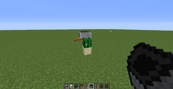 Необходимые ресурсы: песок, рельсы, вагонетка с воронкой, кактус, люк и любые твёрдые блоки.