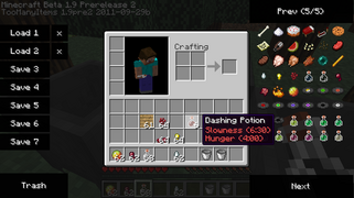 | 1.0.0 | Beta 1.9 Prerelease 2 | Котлы неофициально добавлены. В игре присутствует полностью рабочий код для котла. Сначала именно котлы должны были использоваться для создания зелий, но у котлов не было ID, поэтому его невозможно было получить, а значит невозможно было делать зелья. | |||