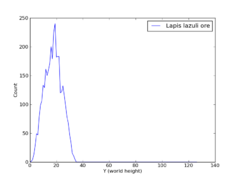 Руда обычно генерируется на высоте 32 блоков и ниже. Самая высокая концентрация лазуритовой руды находится на высоте 19 блоков от коренной породы и составляет около 0,05 %. На высоте максимальной концентрации лазурит встречается в 1,5 раза чаще, чем алмазная руда. В среднем в мире содержание лазуритовой руды составляет 3,43 блока на чанк, что немного больше алмазной.